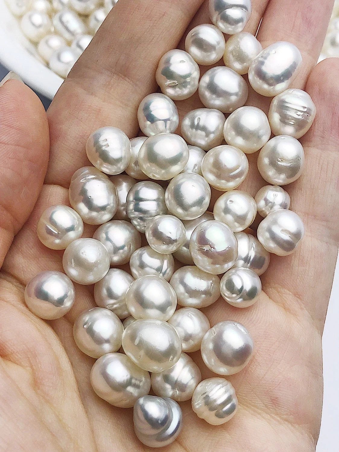 Setiap butir Mutiara Laut Selatan warna putih atau perak memiliki karakter unik — mulai dari bentuknya yang bulat sempurna hingga sedikit oval — menjadikannya bahan utama dalam pembuatan perhiasan mewah seperti kalung, anting, cincin, dan gelang. Warna putih dan perak mencerminkan kesucian, keanggunan, dan kemewahan, cocok untuk dikenakan pada acara formal maupun sebagai hadiah istimewa.